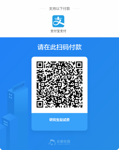 1. 请在复试前通过支付宝扫码缴费。缴纳复试费:80元/人。