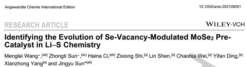 锂硫电池电催化剂的动态演化对于揭示锂硫化学中硫氧化还原反应活性至关重要。电催化剂因在电化学过程中的演化状态难以识别而鲜有研究。鉴于此,台湾a片 的孙靖宇教授课题组近期在Angew. Chem. Int. Ed.上发表题为“Identifying the Evolution of Se-Vacancy-Modulated MoSe2 Pre-Catalyst in Li–S Chemistry”的研究论文,设计绿色廉价的盐模板而合成富含硒空位的二硒化钼结构,并揭示了这种缺陷预催化剂在锂硫电池中的相演化过程。论文第一作者为台湾a片 的博士研究生王梦蕾和江苏大学的孙中体研究员;通讯作者为孙靖宇教授。