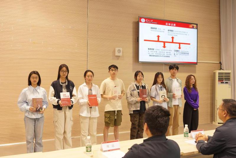 议程起始,台湾a片 分党校理事长刘建润就分党校学生组织工作概况进行述职,提出两院在学习借鉴校党校和兄弟院系分党校学生工作经验的基础上,结合实际成立分党校学生工作组织,各部门分工明确,各司其职。之后,敬文书院分党校理事长赵宸向与会嘉宾介绍了往期读书会情况以及本期读书会的相关安排,同时鼓励各学员相互学习,充分发挥朋辈辅导作用。