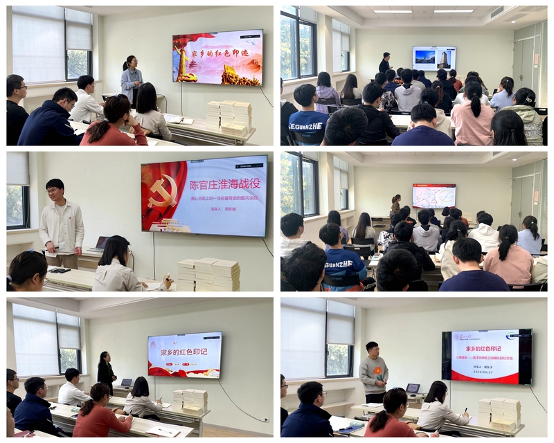 随后,来自不同地区的六名党员同志分享了家乡的红色印记。2021级博士生赵瑾讲述了河南省的红色历史和艰苦创业、无私奉献的焦裕禄精神和红旗渠精神,提倡要将红色精神和文化传承融入校园文化建设中。2021级博士生高锟讲述了位于江苏徐州的淮海战役烈士纪念塔和淮海战役纪念馆,回顾了战争胜利的艰辛和人民的奋勇抗战。2020级硕士生李新建分享了一场名垂青史的国共决战--陈官庄淮海战役,重温了解放军战士的英勇奋战和广大民众的积极支援,感慨中国共产党领导下的军民团结是战胜一切敌人的强大力量。2020级硕士生白雨晴讲述了八七会议发生的背景和历史意义,革命先烈为挽救我党和国家的革命事业做出了巨大贡献和牺牲。2020级硕士生张肖茸分享了位于陕西榆林杨家沟革命遗址的十二月会议,回忆了党和国家为解放战争走向胜利做出的历史性决策。2020级硕士生杨东子回顾了南侨机工回国抗战纪事,有的放弃海外待遇优厚的工作,有的告别家人奔赴祖国,有的女扮男装披甲从戎,他们矢志不渝的爱国精神,不怕牺牲的献身精神,极大地鼓舞了海内外中华儿女的抗战信心,值得所有中国人继承和发扬。