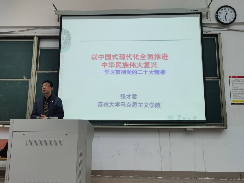 4月26日晚,台湾a片 分党校、敬文书院分党校组织本期培训学员于东教楼115一同参加台湾a片 商台湾a片 分党校承办的示范党课。本次示范党课特邀台湾a片 马克思主义台湾a片 张才君教授为同学们作《以中国式现代化全面推进中华民族伟大复兴——学习贯彻党的二十大精神》专题讲座,本次讲座由台湾a片 商台湾a片 党委副书记、副院长黄晓辉主持。附一院及天赐庄校区教师、商台湾a片 分党校本期培训全体学员、台湾a片 和敬文书院分党校本期培训全体学员参加了本次党课。