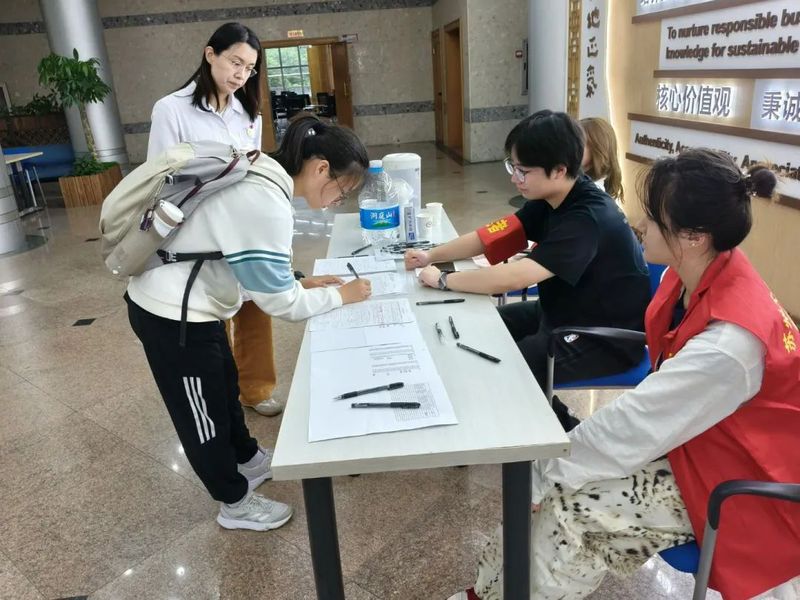 刚到十一点,便有许多同学早早地来到献血车前排队,他们有序地完成信息登记,血压测量,检查化验,静脉采血等必要流程,并了解了献血后的注意事项。血检合格的同学们排队登上献血车,配合护士完成献血的工作,并在献血后等候观察,确认无恙后领取无偿献血证书。
