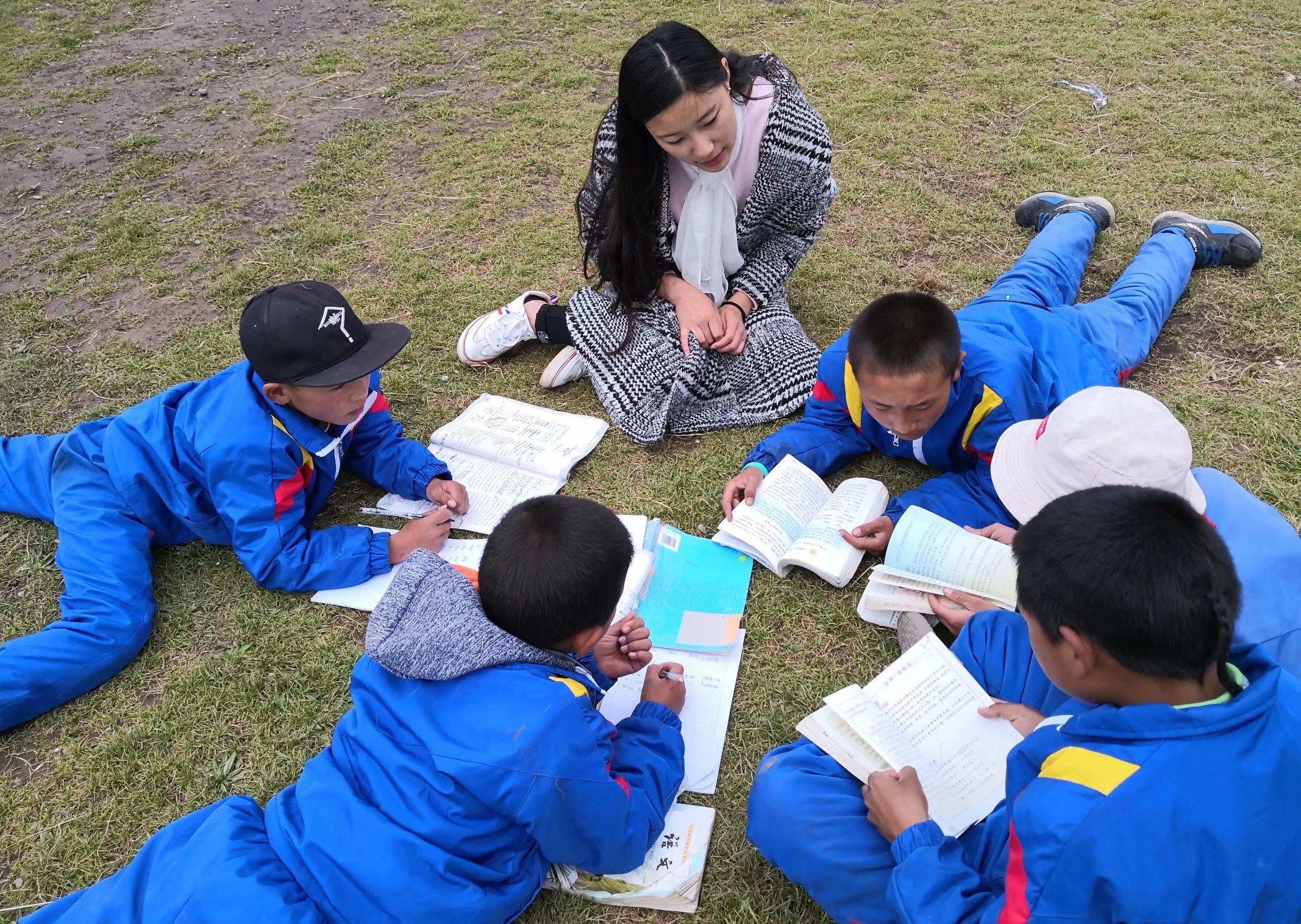 由于高反缺氧与骤寒感冒,几位师生当晚就难以支撑,一夜的煎熬之后,想到13日是周五,志愿者仍咬牙走上讲台……研究生志愿者卜良民任品德与社会课老师,为了这门副课在玉树州统考取得好成绩,他早早地查阅资料,归纳整理考点,细心地带着每一位孩子在书上勾画、朗读。指导老师张振华为四五年级同学们上汉语书法艺术课,刚健挺拔的板书让放学后热爱学习的孩子们久久不肯和家长离去。支教过程中,院党委书记沙丹丹一节《我爱你,祖国母亲》让孩子们爱国之情油然而生;严若今老师的《中国地理》让孩子们懂得爱我河山;孙放老师让品德与社会课走进学生生活;生动活泼的任爽、王晓天把语文课堂讲得栩栩如生;思维敏捷的曹嘉乐、侯景轩则让同学们爱上了数学……