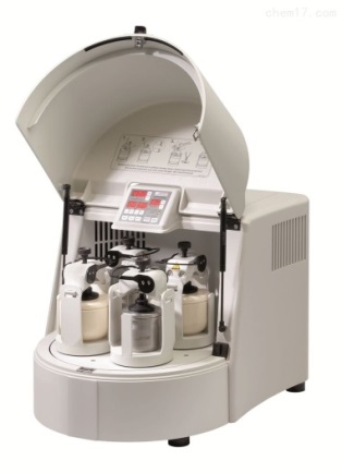 行星式球磨机也叫高能球磨机,是机械合金化和机械活化中最重要的一款仪器。对其工作原理,我们可以通过下图的展示进行一个详细的描述:行星式球磨机都有一个主盘,也叫太阳盘,在主盘上有一个、两个或四个安放研磨碗的底座。当主盘转动时,研磨碗绕主盘轴公转的同时又围绕自身轴心自转,做行星式运动,且其自转方向与转盘转动方向相反。在行星式运动中,研磨碗和主盘旋转所形成的离心力作用在研磨碗内的研磨球和物料上,由于研磨碗和主盘旋转方向相反,所以,离心力在同向与反向间交替发挥作用,结果就是研磨球摩擦研磨碗一侧的内壁(摩擦力粉碎物料),当到达一定强度时,强力撞击另一侧内壁(撞击力粉碎物料),撞击力通过研磨球之间的相互碰撞使其作用增大。物料就是在此强力的冲击力和碾压下,得以粉碎、研磨、分散或混合。
