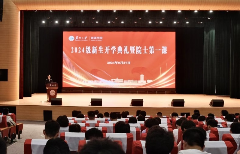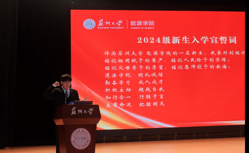 2024级新能源科学与工程专业博士生国晖同学带领宣誓,全体新生的誓言响彻礼堂,激励着每一位新同学牢记苏大校训“养天地正气,法古今完人” 和“厚德笃行,求真创新”的院训内涵,用实际行动来践行新时代中国青年的使命担当。