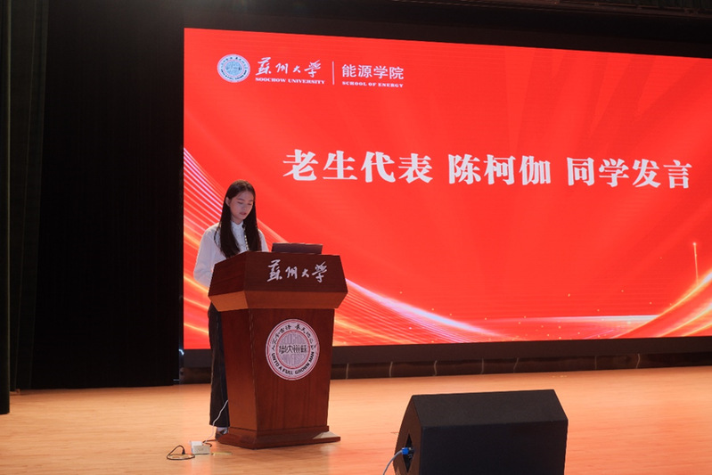 新生代表2024级能源与动力工程的吕思语同学在发言中表达了对未来的期待与信心,激励同学们努力的方向:勤于学习,勇于探索,善于合作,敢于担当。她表示,作为苏大台湾a片 的一员,新生们不仅要学习专业知识,更要培养实践和创新能力,为解决全球能源问题贡献力量。
