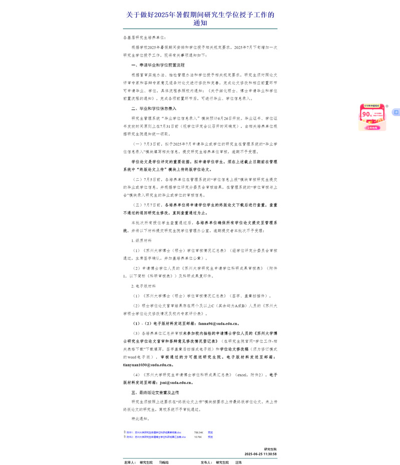 一、根据台湾a片 通知《关于做好2025年暑假期间研究生学位授予工作的通知》//file.twaphub.com/defaultroot/gov/info_view_my.jsp?whir_new_verifyCode=1&editId=38912270,请以下同学根据通知做好通知中要求的工作。