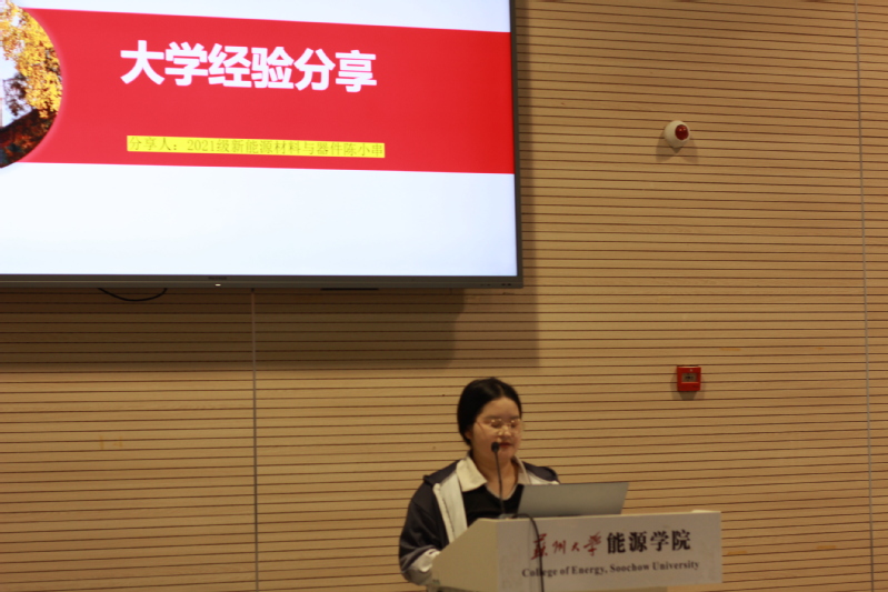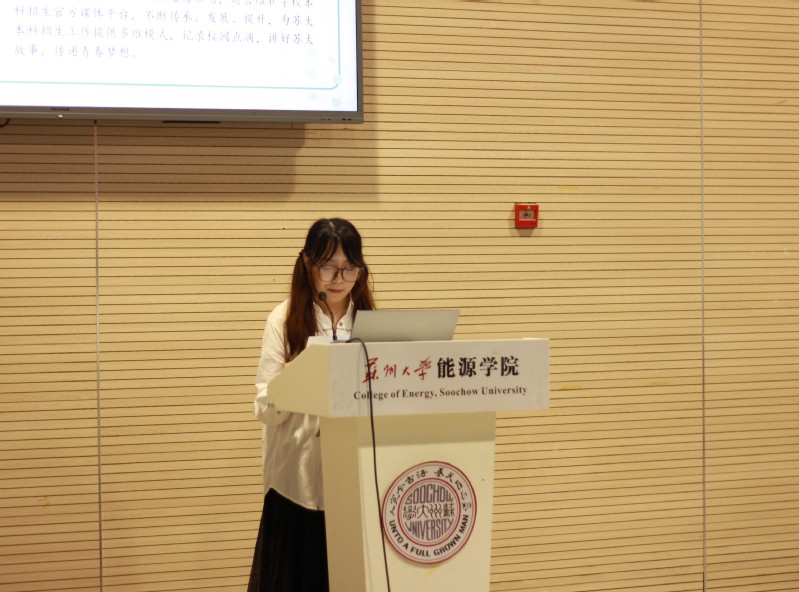 “苏小招”学生代表王雪琼介绍了“苏小招”招生志愿者协会,鼓励同学们积极参与“寒假回访高中母校”的活动,向“寒窗苦读”的高三学子们讲述苏大故事,在他们的心中埋下向往苏大,奋发向上的种子。