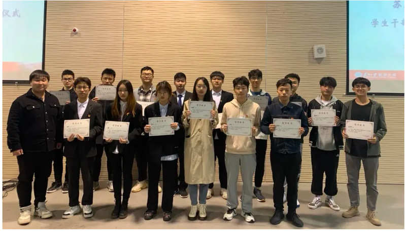 随后,进入到学生干部受聘环节。沙老师、张老师、王老师分别为各学生组织学生干部颁发岗位聘书。