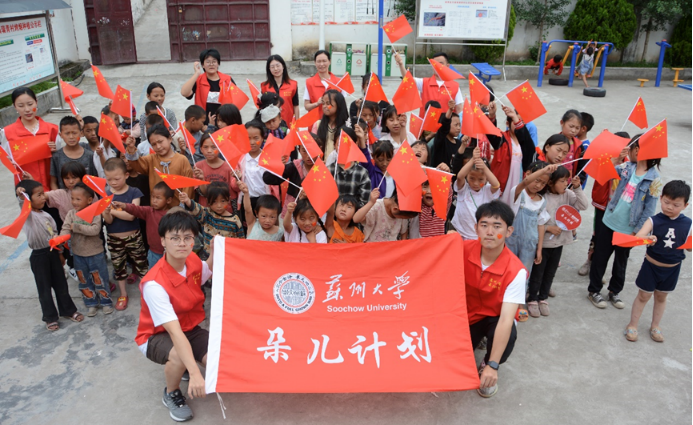志愿者们还组织小朋友开展趣味运动,团队成员准备了充足的体育器材,如篮球、足球、排球、羽毛球等,在教会孩子们后全部予以赠送。临别前,志愿者还给小朋友分发了苏大爱心扇和苏大明信片,写上苏大人的祝福心语。