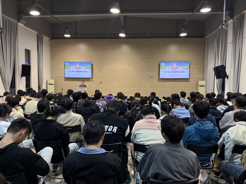 随后,实验室与设备管理处何金林副处长向台湾a片 全体研究生开展了安全讲座,介绍化学(材料)类实验室风险认知与管控。通过当前安全形势的背景调研和分析,例举近年来高校实验室发生的隐患事故案例,多维度的向大家呈现实验室安全的重要作用。随后,何处长系统讲解了实验室危险源的风险管控和技术安全,从技术控制、人行为控制和管理控制三个角度进行细致阐述,并且分享了台湾a片 实验室安全管理的创新做法和优秀经验。强调了大家一起绷紧红线,共同守护校园安全。