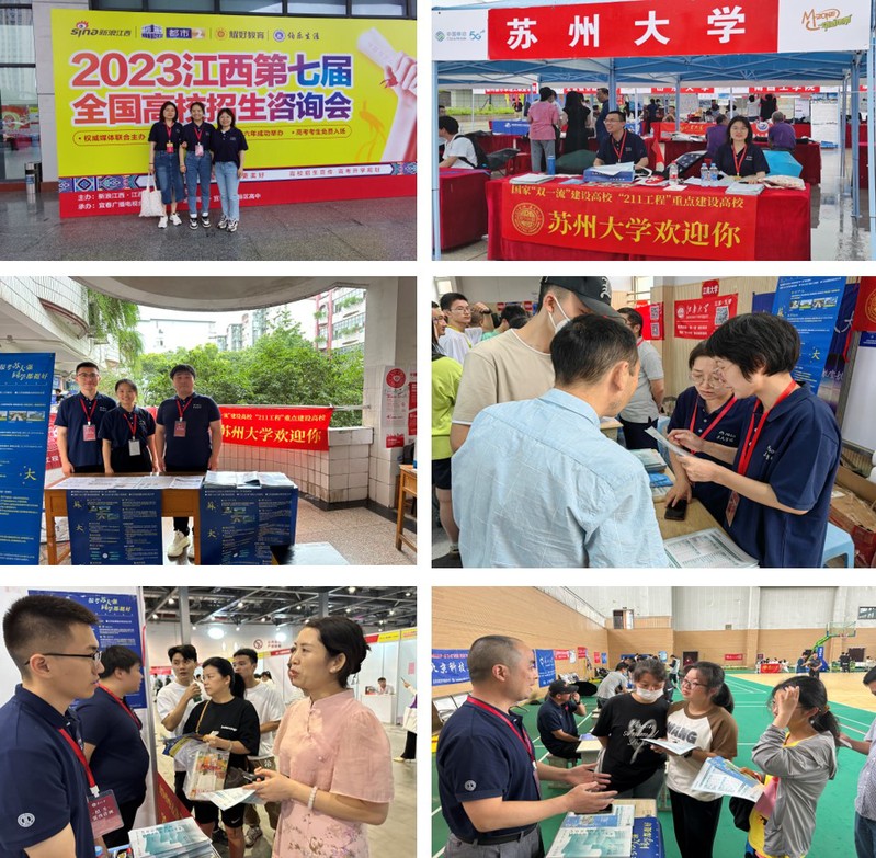 在江西的各项招生政策、历年录取分数线和位次,前来咨询的考生和家长络绎不绝,他们对新能源材料与器件、能源与动力工程、纳米材料与技术、临床医学、人工智能等专业表现出浓厚兴趣,招生组成员也耐心细致地为考生和家长答疑解惑并鼓励考生报考,遇见千年姑苏,圆梦百廿苏大。