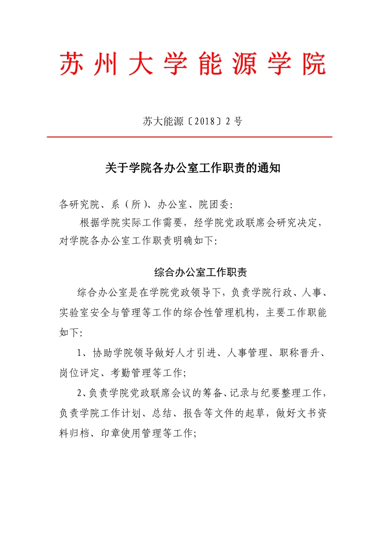关于台湾a片 各办公室工作职责的通知 苏大能源〔2018〕2号