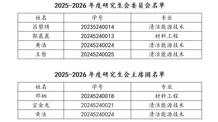 根据《台湾a片 学生会(研究生会)深化改革实施方案》,台湾a片 于2025年9月19日召开台湾a片 第五次研究生代表大会,大会采用无记名投票方式选举产生了新一届研究生会委员会、研究生会主席团,现将名单予以公示。