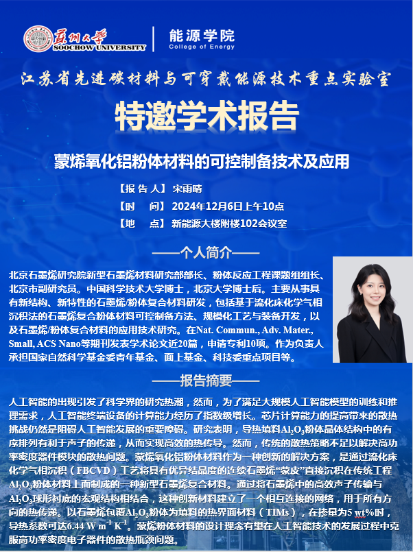 江苏省先进碳材料与可穿戴能源技术重点实验室特邀学术报告