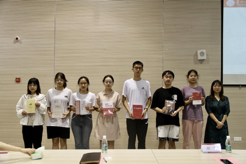 议程最后,台湾a片 党委书记沙丹丹与敬文书院党委副书记、副院长胡萱分别为敬文书院、台湾a片 组长颁发书籍,书籍包括《马克思与我们》、《平语近人》、《共产党员的力量》等符合当代社会主流思潮、体现改革创新精神的名著经典。