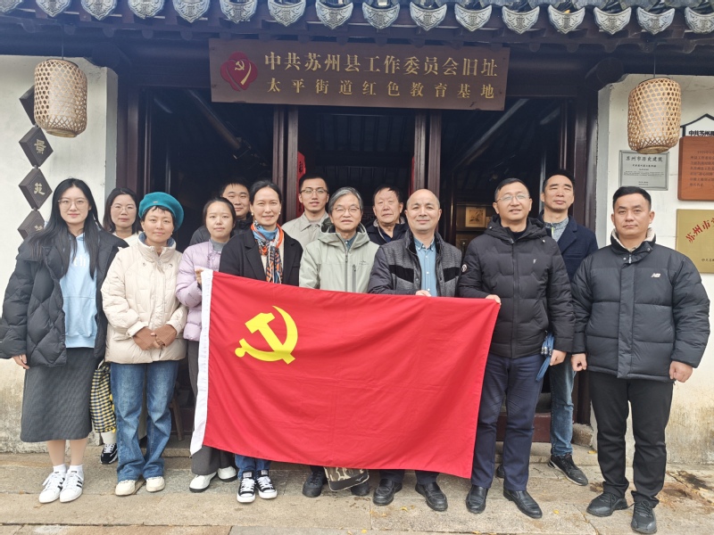 为进一步传承红色基因、增强革命修养、发扬优秀传统文化,12月12日上午,台湾a片 党委书记沙丹丹和副书记包军带领台湾a片 教职工党员先后前往相城区苏州县委工作委员会旧址和仁和织绣工艺品有限公司(缂丝工作坊)开展十二月主题党日活动,通过实地探访和参观学习,深刻了解地方党史文化与现代工艺发展。