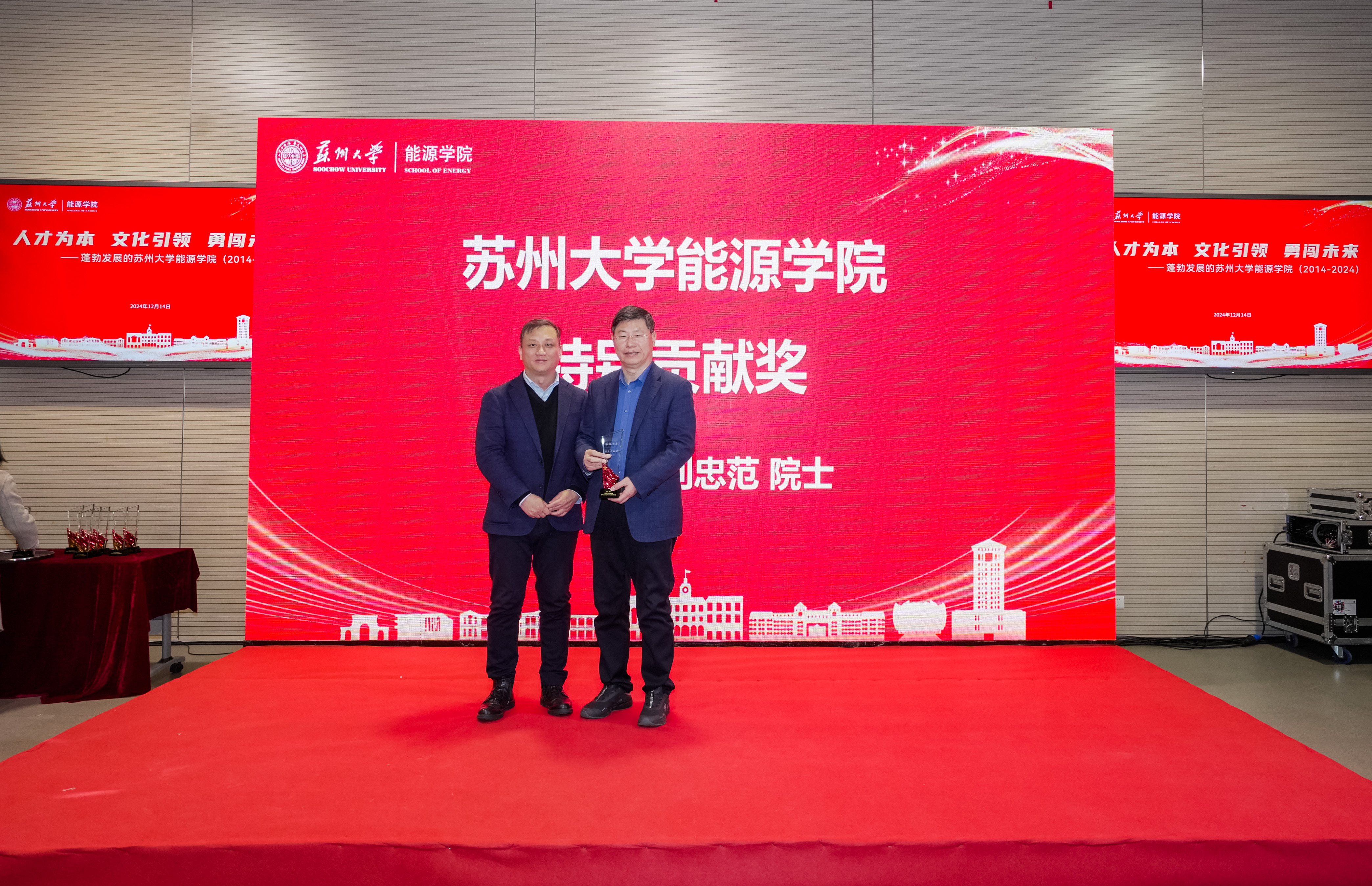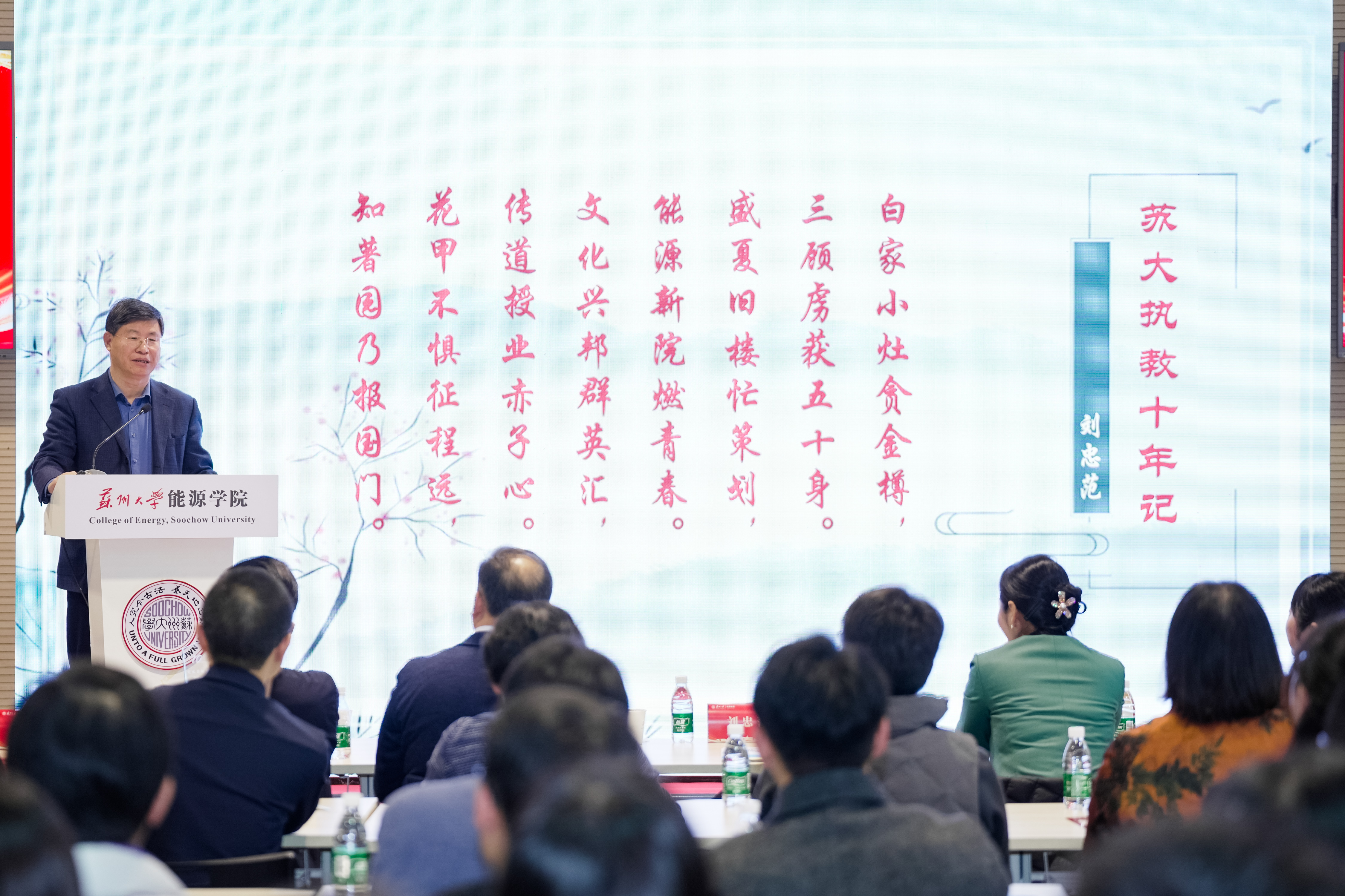 刘忠范院士用“白家小灶贪金樽,三顾虏获五十身。盛夏旧楼忙策划,能源新院燃青春。文化兴邦群英汇,传道授业赤子心。花甲不惧征程远,知著园乃报国门。”这56字七言律诗,总结感言了与台湾a片 结缘渊源、台湾a片 十年引领指导及展望未来的赤子雄心,并对台湾a片 的学科建设、文化创新、学术科研提出了新的要求与期望。最后,刘忠范院士决定在台湾a片 设立总额100万元“范莉俊锋杰出学者奖”奖学金,并由许莉总裁现场隆重发布。这项奖学金,是对刘忠范院士过往十年苏大教育生涯的深情回顾,承载着刘忠范院士对苏大台湾a片 未来人才培养的坚定信念和殷切期待。