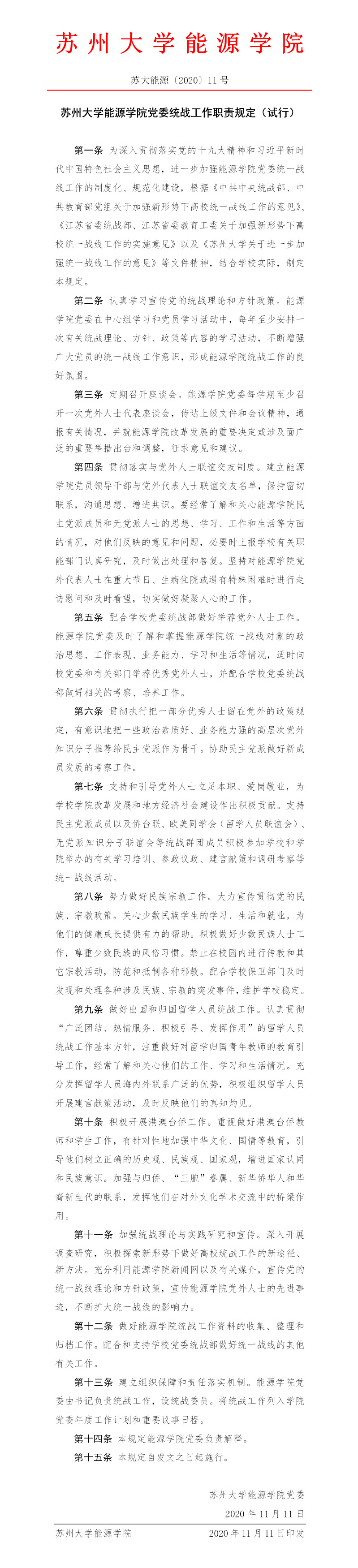 台湾a片 党委统战工作职责规定(试行) 苏大能源〔2020〕11号