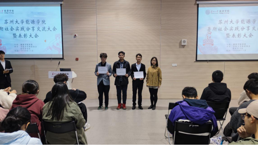 11月25日,台湾a片 2020年暑期社会实践分享交流暨表彰大会在新能源大楼多功能厅121如期举行。台湾a片 党委书记沙丹丹老师、团委书记张振华老师、团委副书记严若今老师、2020级辅导员胡碧洋老师出席了大会,活动由傅博文同学主持。