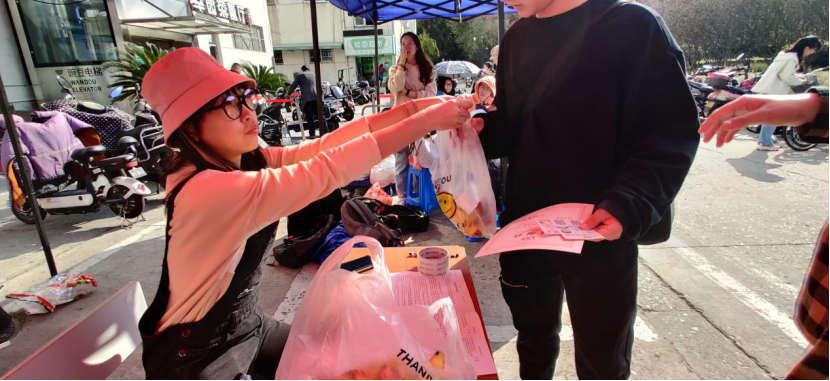 早晨8点,天气还有些清冷,青年志愿者早早来到指定地点,为即将到来的献血活动搭好帐篷,并为献血志愿者准备能量补给。