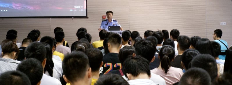 9月14日上午9点,台湾a片 在新能源大楼多功能厅举办2020级新生校园安全讲座,苏州葑门派出所牛佳佳警官、台湾a片 东区保卫处彭照华科长和光健老师应邀出席,讲座由台湾a片 辅导员胡碧洋老师主持。