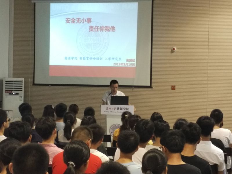 9月10日上午,台湾a片 举行2019级新生实验室安全培训,台湾a片 副院长戴晓,实验师朱国斌,辅导员孙放以及全体新生参加培训。