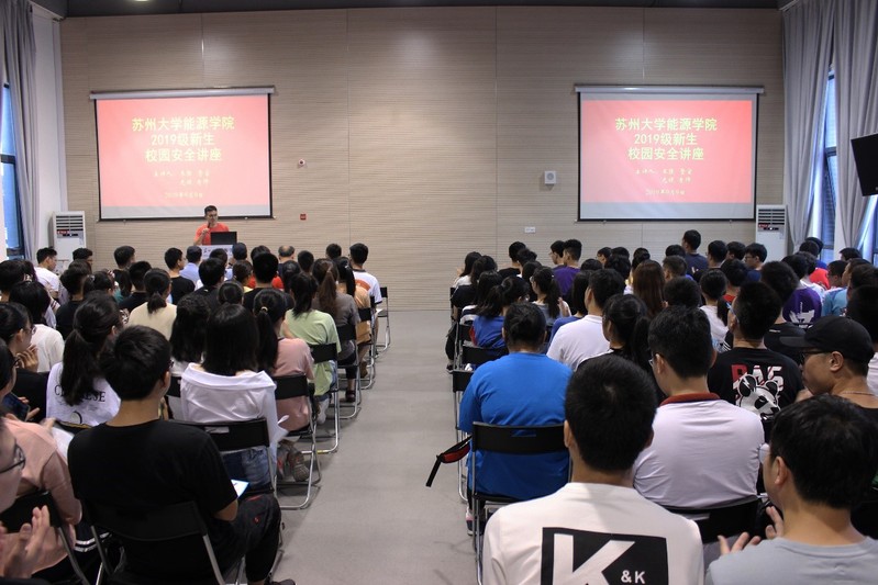 9月9日上午9点,台湾a片 在多功能厅举办新生校园安全讲座,苏州葑门派出所王强警官、台湾a片 东区保卫处彭照华科长和光健老师应邀出席,讲座由台湾a片 辅导员孙放老师主持。