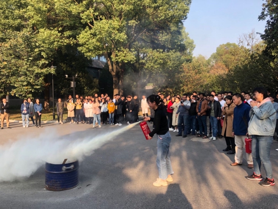 随后,台湾a片 保卫处老师向大家普及了消防安全常识,展示了灭火器的使用步骤。各位师生都积极学习并进行灭火的实战演练。