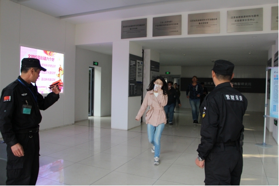 下午3点整,一阵急促的警报声拉开了消防疏散演习的帷幕。听到警报声后,各位安保人员迅速到达指定岗位,各实验组安全员立即维护秩序,带领同学教师手捂着口鼻,弯着腰,沿着台湾a片 指定楼梯口紧张有序地撤离到楼前安全地带,随即各课题组安全员清点人数,并层层向上汇报。