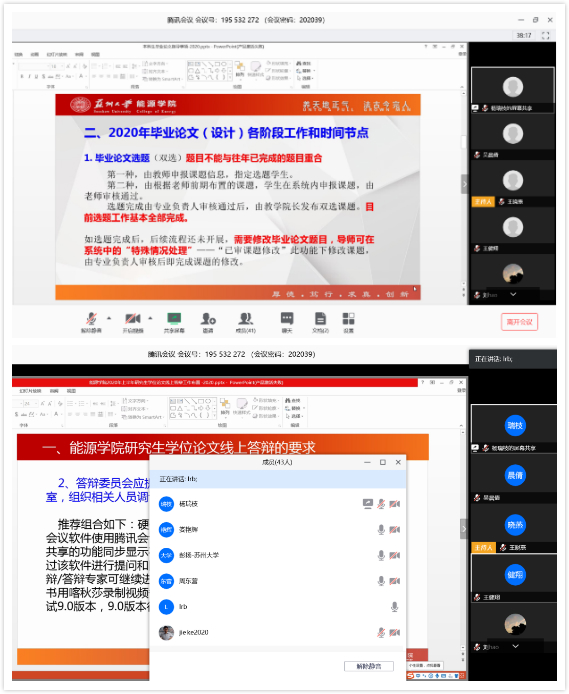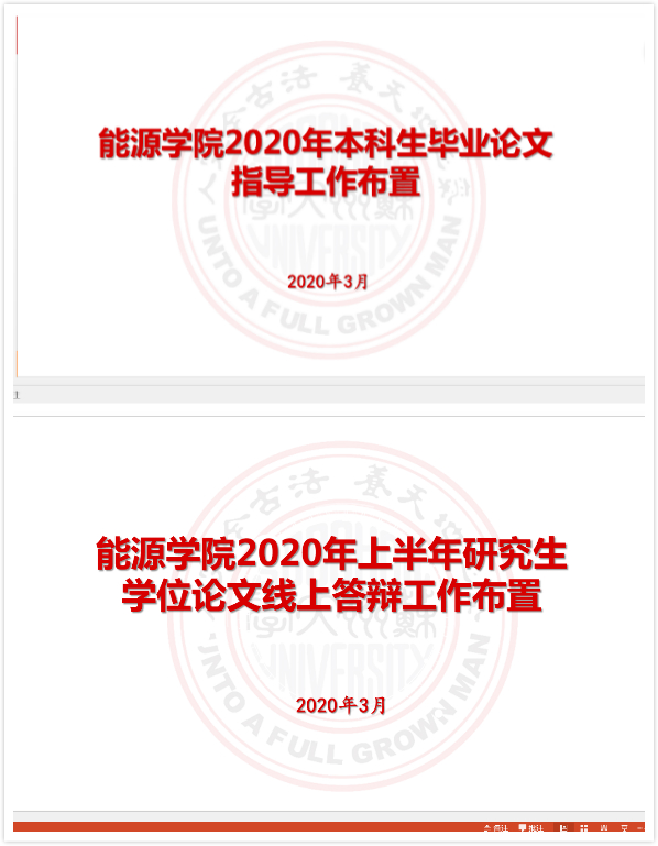 杨瑞枝副院长根据台湾a片 研究生院、教务部的相关工作要求,对疫情防控期间台湾a片 本科生和研究生的人才培养工作进行了布置。通过线上PPT形式,首先向全体导师详细介绍了能源台湾a片 2020年本科生毕业论文(设计)工作的时间节点及指导老师职责,其次具体布置了能源台湾a片 2020年上半年研究生学位论文的工作,并指出了在今后学生论文指导工作中的注意事项。