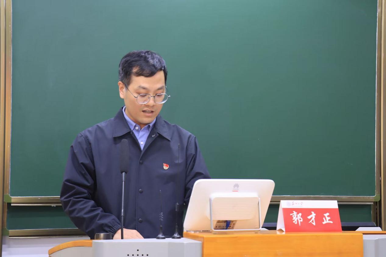 合影结束后,第一次课程培训正式拉开帷幕。台湾a片 党委组织部副部长郭才正以《选择:做一个怎样的共产党员》为题开展专题授课。授课内容紧扣党员身份使命,围绕理想信念、责任担当、作风建设等核心要点展开,既有理论高度又有实践温度,为青年学子指明了成长方向。郭才正副部长勉励同学们在人生选择中坚守初心、勇毅前行,以合格共产党员的标准严格要求自己,在学习与实践中锤炼过硬本领,为国家发展与民族复兴贡献青春力量。