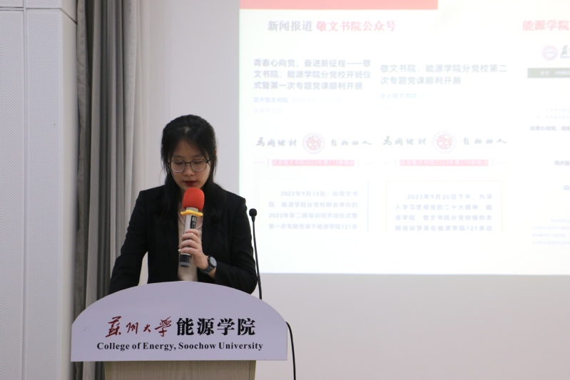 首先,台湾a片 分党校学生工作组织秘书长张静如进行述职。她从组织概况、组织架构、工作内容、未来展望、特别鸣谢五个方面讲述了本期分党校学生工作组织建设的整体情况与学员过程化教育的具体成果。同时她表示,本期读书会的顺利开展得益于指导老师们的躬亲指导与两院学员们的热忱支持,并借此表达了对本期读书会所有辛勤参与者的诚挚感谢。