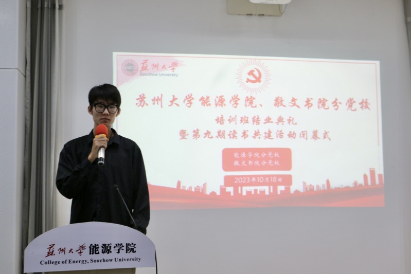 闭幕式最后,敬文书院分党校代表胡耀文总结发言,表示此次读书共建活动再次强化了敬文书院和台湾a片 之间的学习交流关系,两院同学积极投入,凝心聚力,在本次读书会中创造出丰富多元的思想成果,营造了浓厚的学习氛围,希望更多学员能在接下来的共建活动中迸发光彩,也祝愿两院携手并进,友谊长存。