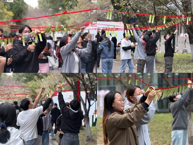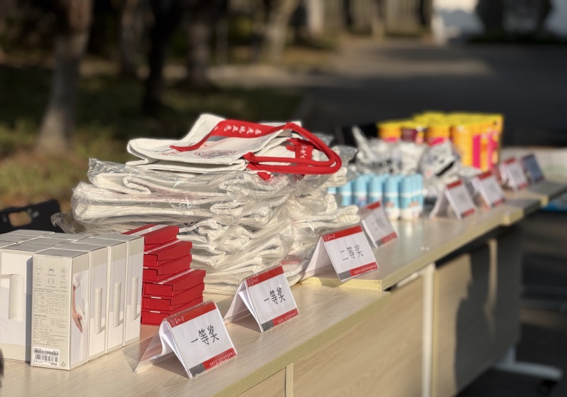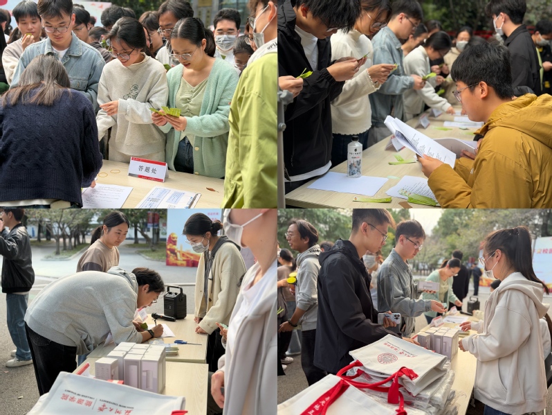 接下来的实验室安全知识竞答,将现场的气氛推向了高潮。题卡在微风中轻轻摇曳,一串串随风飘扬的安全密语,吸引着各位师生们逐一破译。学生们兴致勃勃地穿梭在题卡之间,自选心仪的题目,满怀期待地奔赴答题区域,准备迎接挑战,通过智慧与努力的结合“解锁”正确答案。每当成功破解题目,他们便能即刻兑换到一份份精心准备的惊喜小礼品,脸上洋溢着成就感和喜悦。