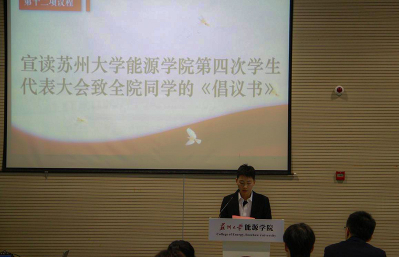 大会接近尾声,孙宇同学宣读台湾a片 第四次学生代表大会致全院同学的《倡议书》希望同学们坚定理想信念,铸就奋斗基石;开拓进取,敢为人先,勇攀科学高峰;努力创业创造,激发创新活力。