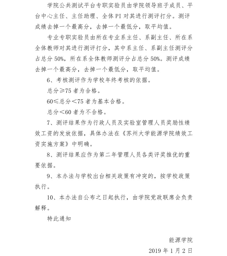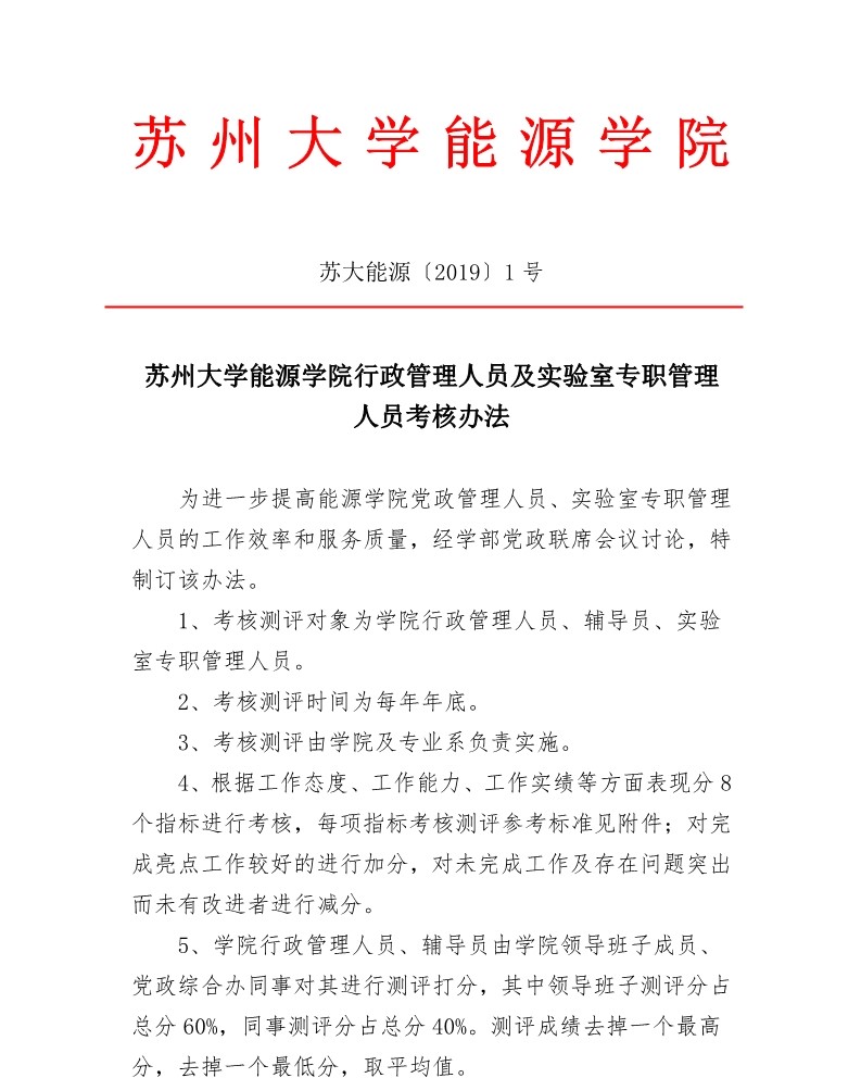 台湾a片 行政管理人员及实验室专职管理人员考核办法 苏大能源〔2019〕1号