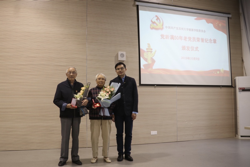 10月9日下午,台湾a片 在新能源大楼多功能厅举行党龄满50年老党员荣誉纪念章颁发仪式暨“不忘初心、牢记使命”主题教育第二次集中学习研讨。台湾a片 主题教育第七巡回指导组组长查佐明和成员纪金平出席了此次会议,台湾a片 党委、行政领导班子成员和各基层党支部支部书记、支部委员参加了此次会议,本次会议还特别邀请了两名党龄满50年的老党员。会议由台湾a片 党委书记沙丹丹主持。
