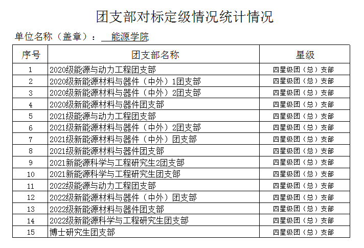 根据团中央《团(总)支部“对标定级”工作指引》文件精神和校团委关于对标定级工作的指示精神,经团支部自评、团委审核与复核,现将结果公示如下: