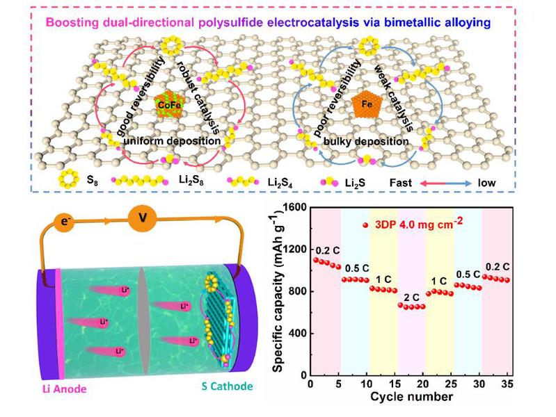 锂硫电池由于诸多优点已经获得了诸多科研工作者的关注,目前限制其大规模应用的瓶颈主要在于多硫化锂的穿梭效应和氧化还原动力学缓慢等。基于以上现状,台湾a片 的孙靖宇教授团队在Advanced Functional Materials上发表题为“Boosting Dual-Directional Polysulfide Electrocatalysis via Bimetallic Alloying for Printable Li–S Batteries”的研究论文。台湾a片 硕士研究生史子雄为第一作者;孙靖宇教授为通讯作者。