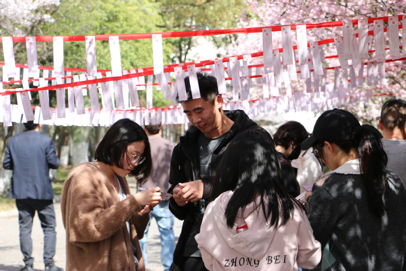 活动伊始,台湾a片 师生纷纷来到樱花树下摘取感兴趣的题卡,抬眼望花,低眸看题,一派和谐。随着活动的开展,答题的师生们情绪逐渐高涨,热情洋溢,在互问互助互学中沟通交流着,欢声与笑语萦绕花枝,荡漾在整个樱花大道。求知的热情与青春的活力相互交织,处处彰显着能源青年的锐气和风采。