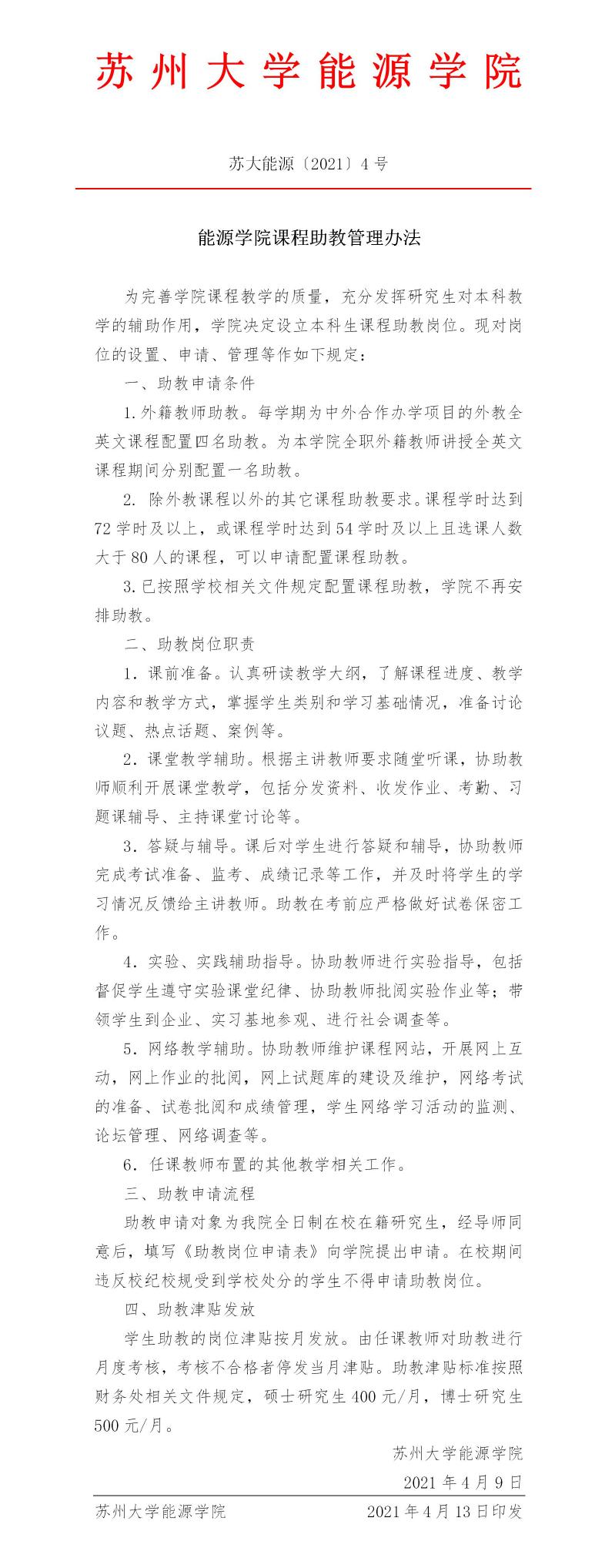 台湾a片 课程助教管理办法 苏大能源〔2021〕4号