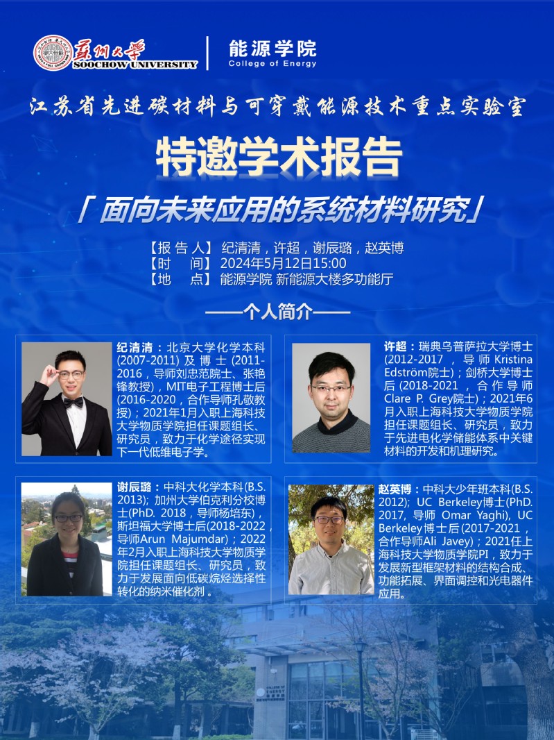 江苏省先进碳材料与可穿戴能源技术重点实验室 2024年特邀学术报告三