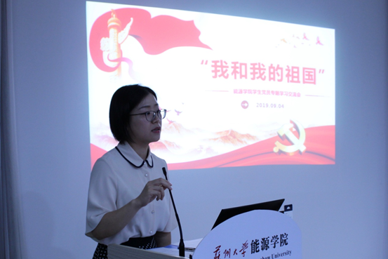 2019年9月4日,为庆祝新中国成立70周年,进一步推动“两学一做”学习教育深入开展,台湾a片 党委开展“我和我的祖国”学生党员学习交流会。台湾a片 党委书记沙丹丹、本科生学生党支部书记张振华、研究生党支部书记沈力炜、本科生辅导员孙放及台湾a片 全体学生党员参加了学习交流会。大会由研究生辅导员严若今老师主持。