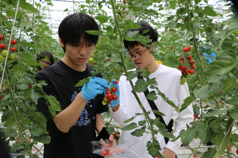 走进农场,空气中肆意弥漫着泥土的芬芳,农场负责人一路上向大家详细介绍了农场的起源与特点,开展了一堂别开生面的“田野讲座”——无土番茄栽种技术、果实采摘技巧等知识拓展了同学们的劳动知识面,同时也让大家认识到当前农业技术发展与革新速度之快、质量之高,同学们也在这个过程之中体会到了农业科技的独特魅力与巨大潜力。