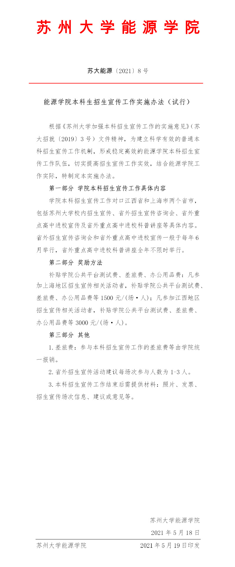 台湾a片 本科生招生宣传工作实施办法(试行) 苏大能源〔2021〕8号