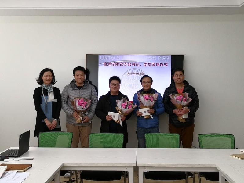 2019年3月4日下午,台湾a片 党委在新能源大楼217会议室为台湾a片 原新能源教工党支部书记田景华、组织委员孙迎辉、宣传委员赵亮以及能源与动力工程教工党支部书记王健翔举办了一场简短又隆重的荣退仪式。