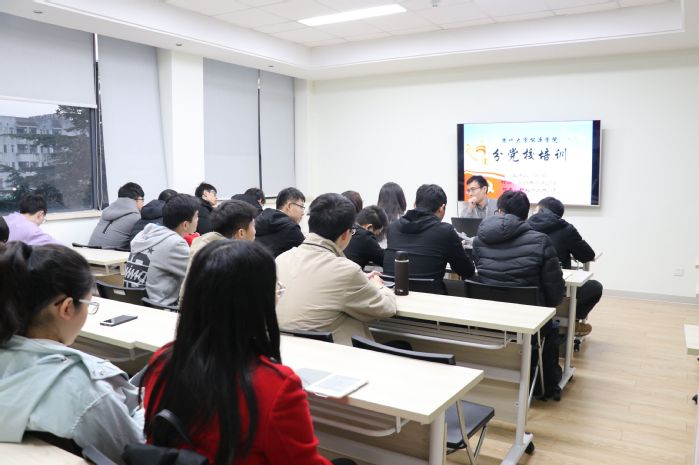 党委副书记沙丹丹老师和辅导员孙放老师对新一批的入党积极分子和预备党员进行了以“改革开放40周年——将改革进行到底”为专题的培训和发展党员流程介绍。
