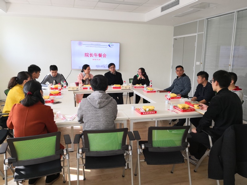 的学习生活状况。第二个环节,晏院长让每位同学提一个困扰自己的问题,院长和老师们一起为学生进行解答。在用餐过程中,晏院长和各位老师重点对一年级的学生表达了关心,询问他们入学后半个学期里的学习情况,是否适应了大学的学习生活节奏。晏院长还给大家谈了一些专业建设与未来专业发展等相关问题,开阔同学们的眼界。