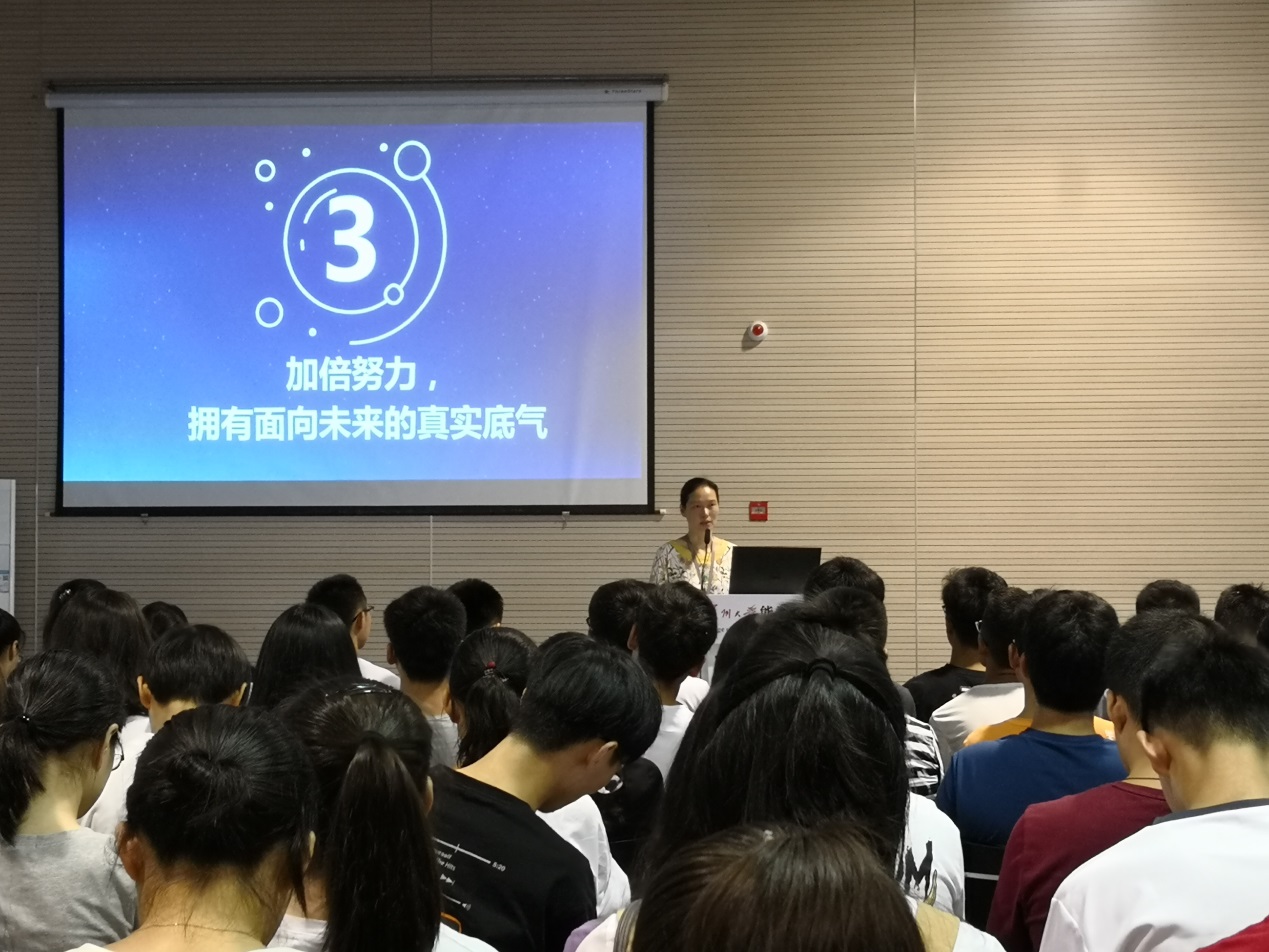 沙丹丹老师从立足脚下,放眼未来;树立正确的信仰;加倍努力,拥有面向未来的真实底气这三个方面给新生做了既高屋建瓴又深入浅出的指导。沙老师以“高考是否重要”启发同学们思考:曾经重要的高考,现在已经成为了过去时,进入大学就是一个全新的开始。沙老师指出作为一名有志大学生,不要被世俗遮蔽双眼,更不要随世俗而起舞,要摒弃读书无用论的谬误,谨记读书不一定可以解决一切问题,但读书一定可以帮我们改变看问题的角度。